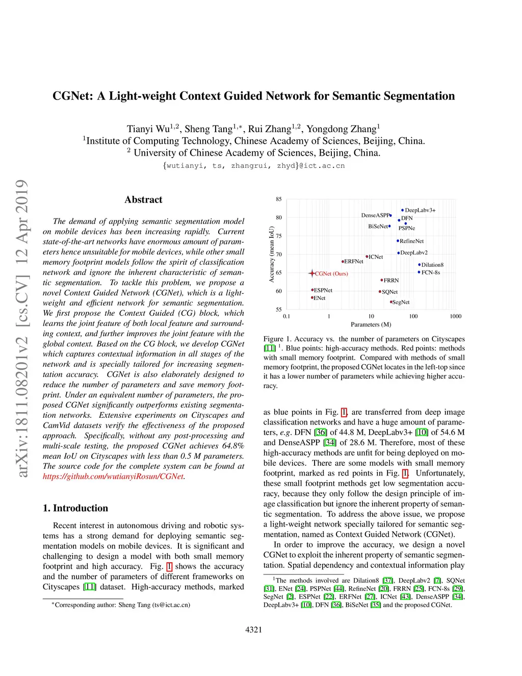 CGNet: A Light-weight Context Guided Network for Semantic Segmentation