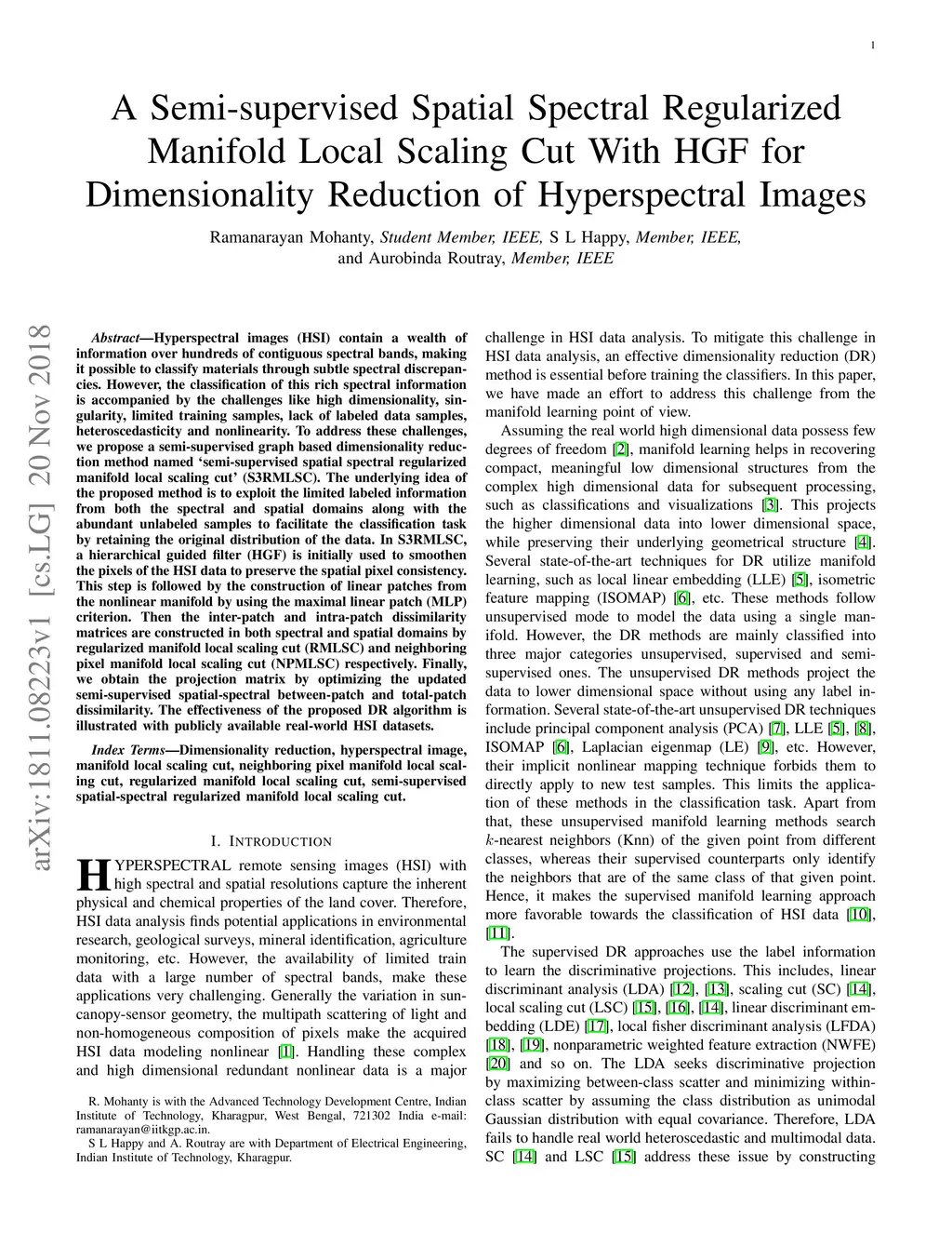 Cut With HGF for Dimensionality Reduction of Hyperspectral Images