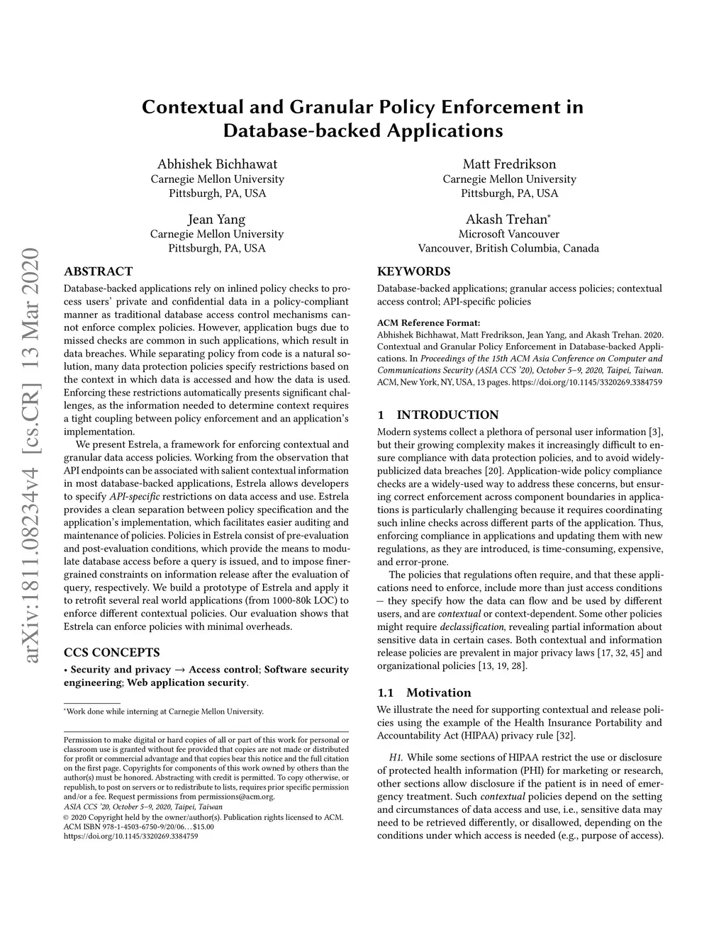Contextual and Granular Policy Enforcement in Database-backed