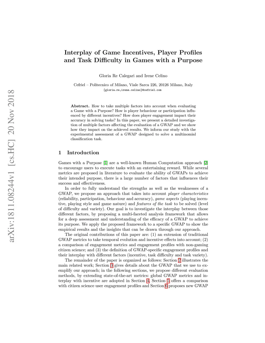 How to take multiple factors into account when evaluating a Game with a Purpose? How is player behaviour or participation influenced by different incentives? How does player engagement impact their accuracy in solving tasks? In this paper, we present a detailed investigation of multiple factors affecting the evaluation of a GWAP and we show how they impact on the achieved results. We inform our study with the experimental assessment of a GWAP designed to solve a multinomial classification task.