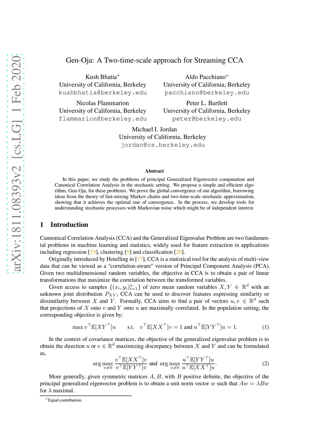 Gen-Oja: A Two-time-scale approach for Streaming CCA
