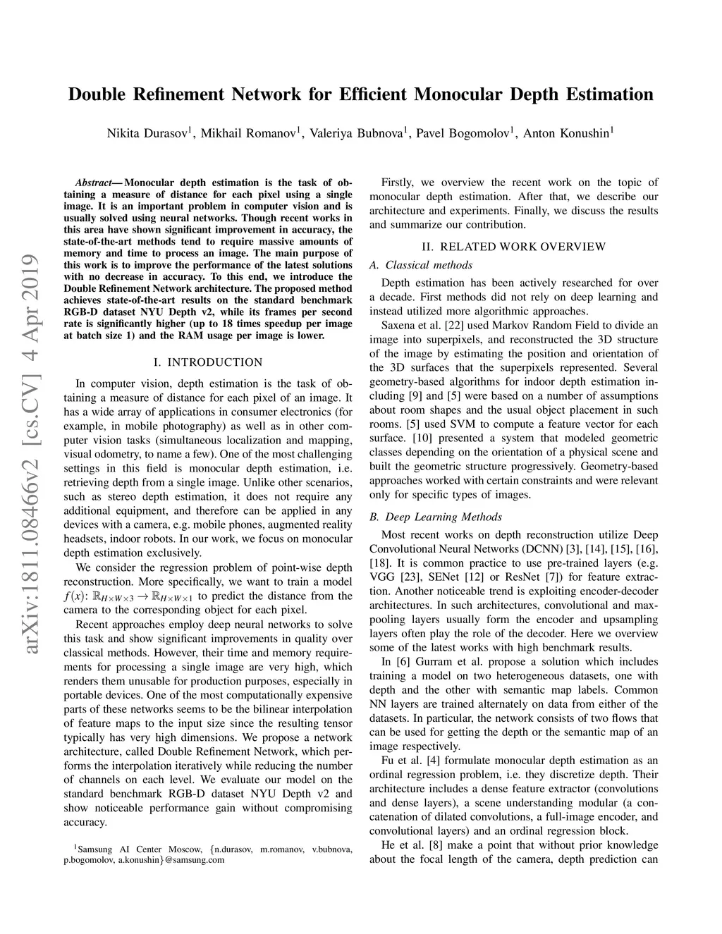 Double Refinement Network for Efficient Indoor Monocular Depth