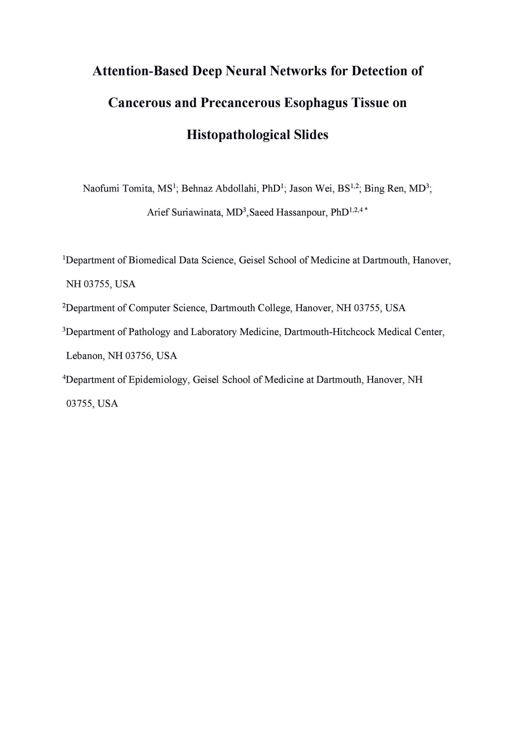 Precancerous Esophagus Tissue on Histopathological Slides
