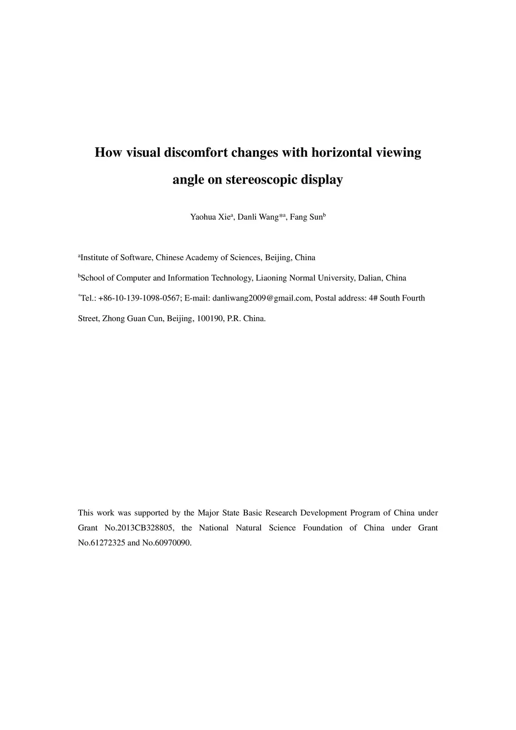 How visual discomfort changes with horizontal viewing angle on
