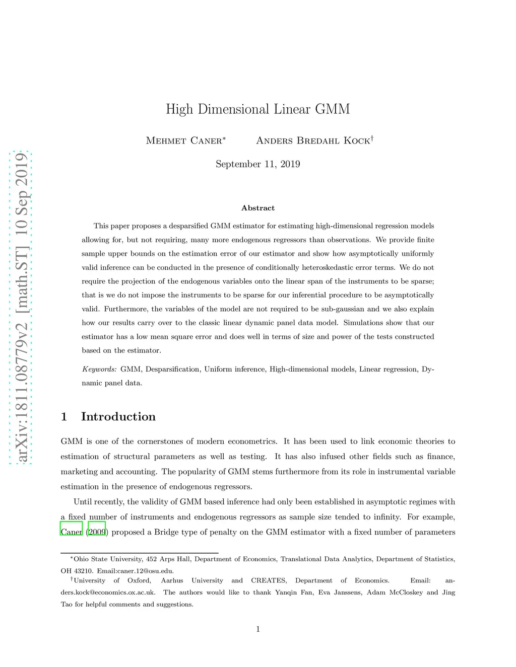 High Dimensional Linear GMM