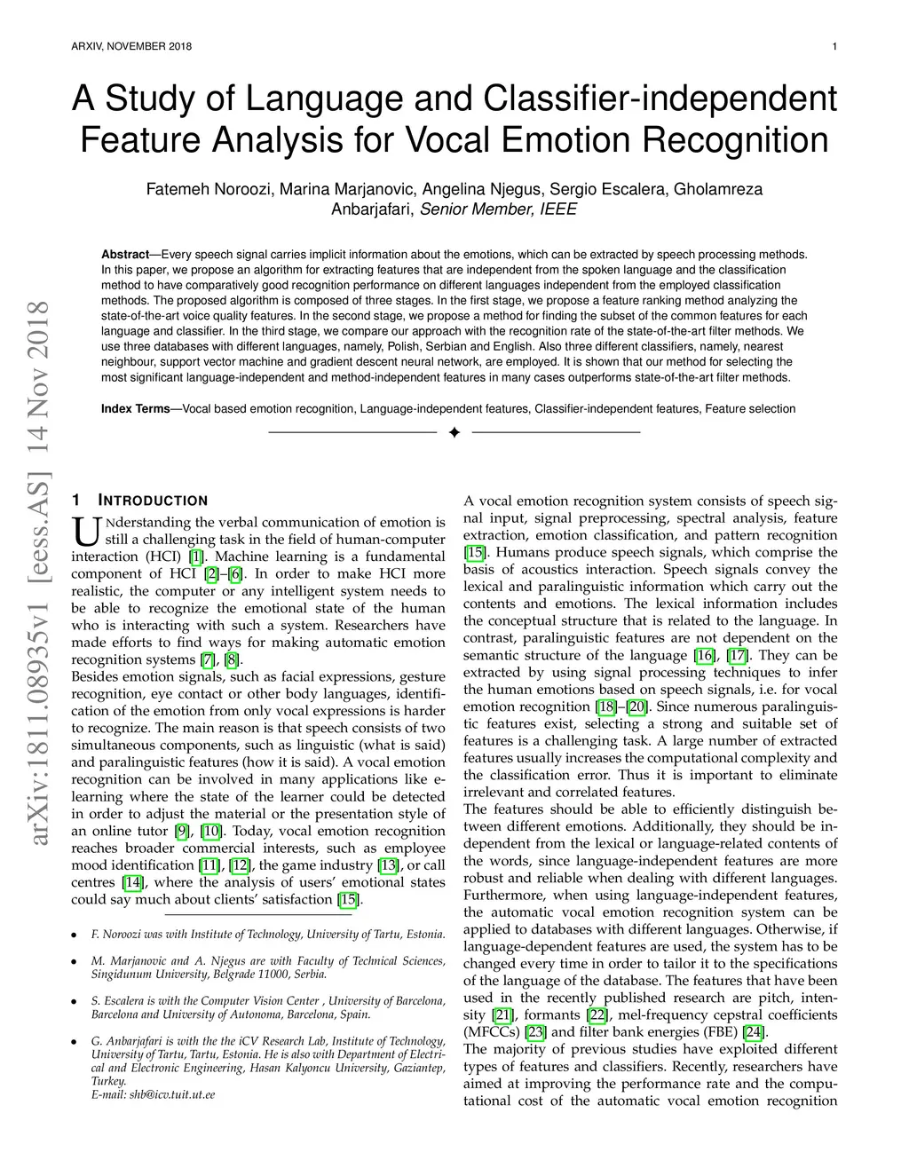Vocal Emotion Recognition