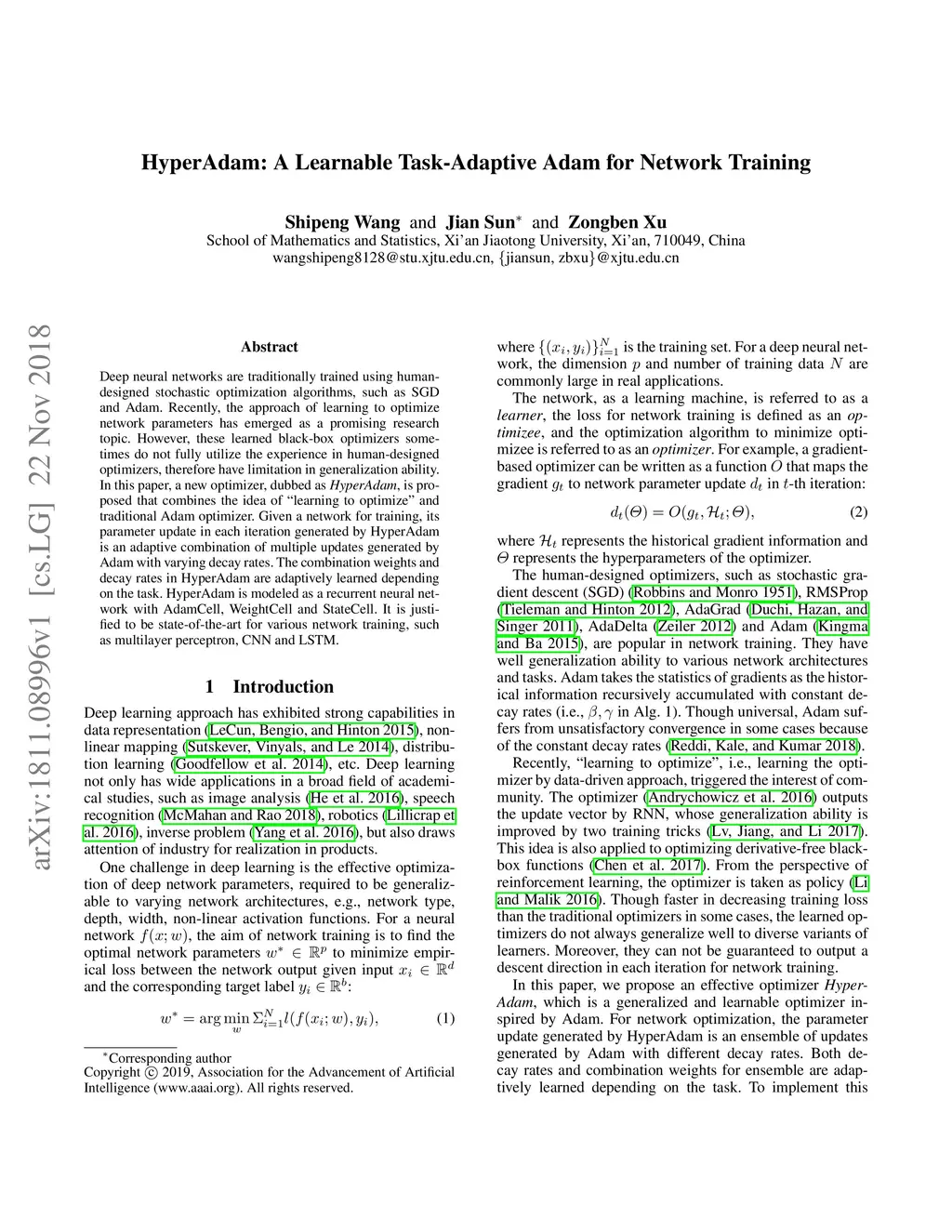 HyperAdam: A Learnable Task-Adaptive Adam for Network Training