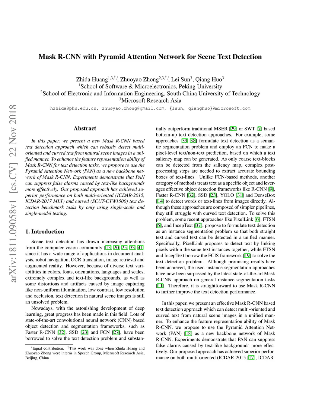 Mask R-CNN with Pyramid Attention Network for Scene Text Detection