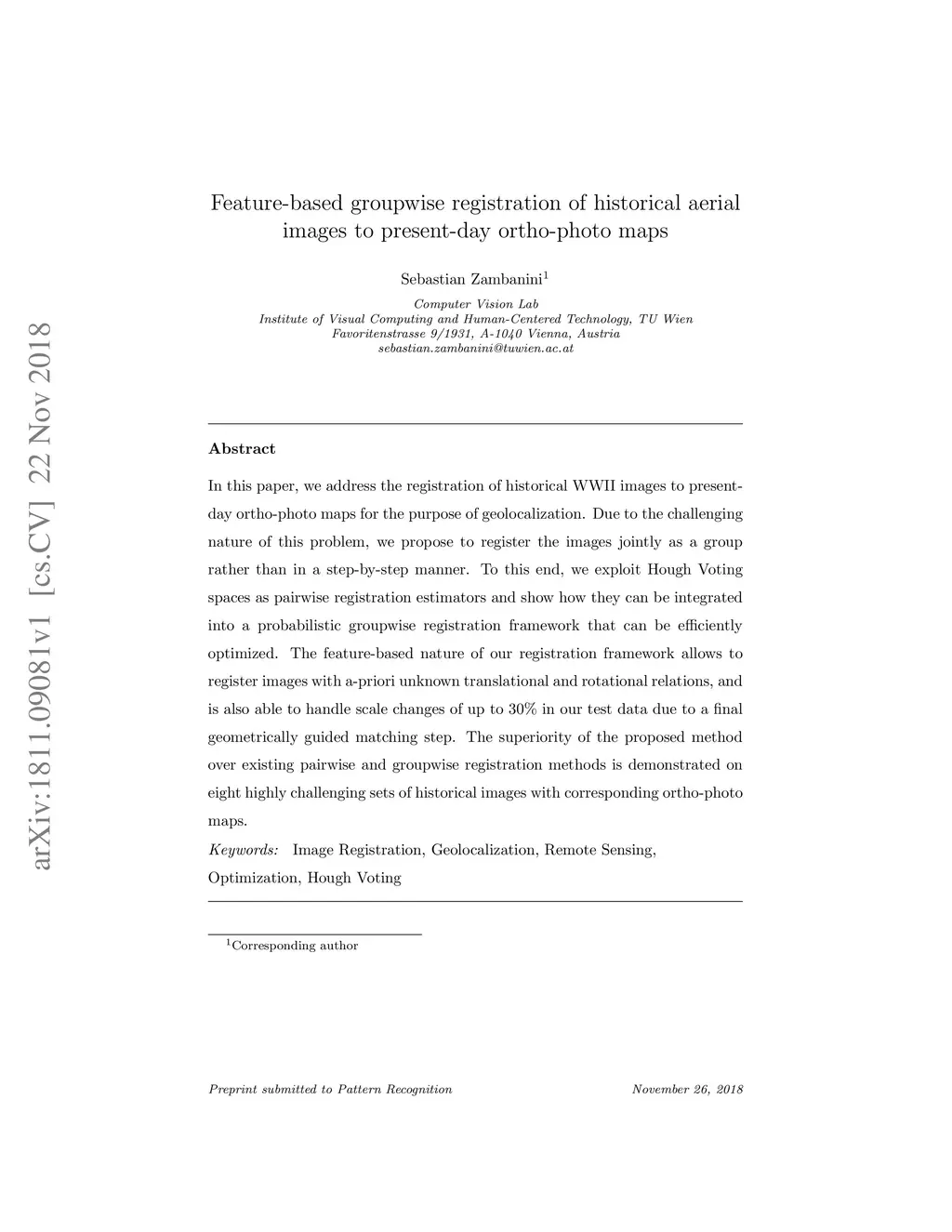 In this paper, we address the registration of historical WWII images to present-day ortho-photo maps for the purpose of geolocalization. Due to the challenging nature of this problem, we propose to register the images jointly as a group rather than in a step-by-step manner. To this end, we exploit Hough Voting spaces as pairwise registration estimators and show how they can be integrated into a probabilistic groupwise registration framework that can be efficiently optimized. The feature-based nature of our registration framework allows to register images with a-priori unknown translational and rotational relations, and is also able to handle scale changes of up to 30% in our test data due to a final geometrically guided matching step. The superiority of the proposed method over existing pairwise and groupwise registration methods is demonstrated on eight highly challenging sets of historical images with corresponding ortho-photo maps.