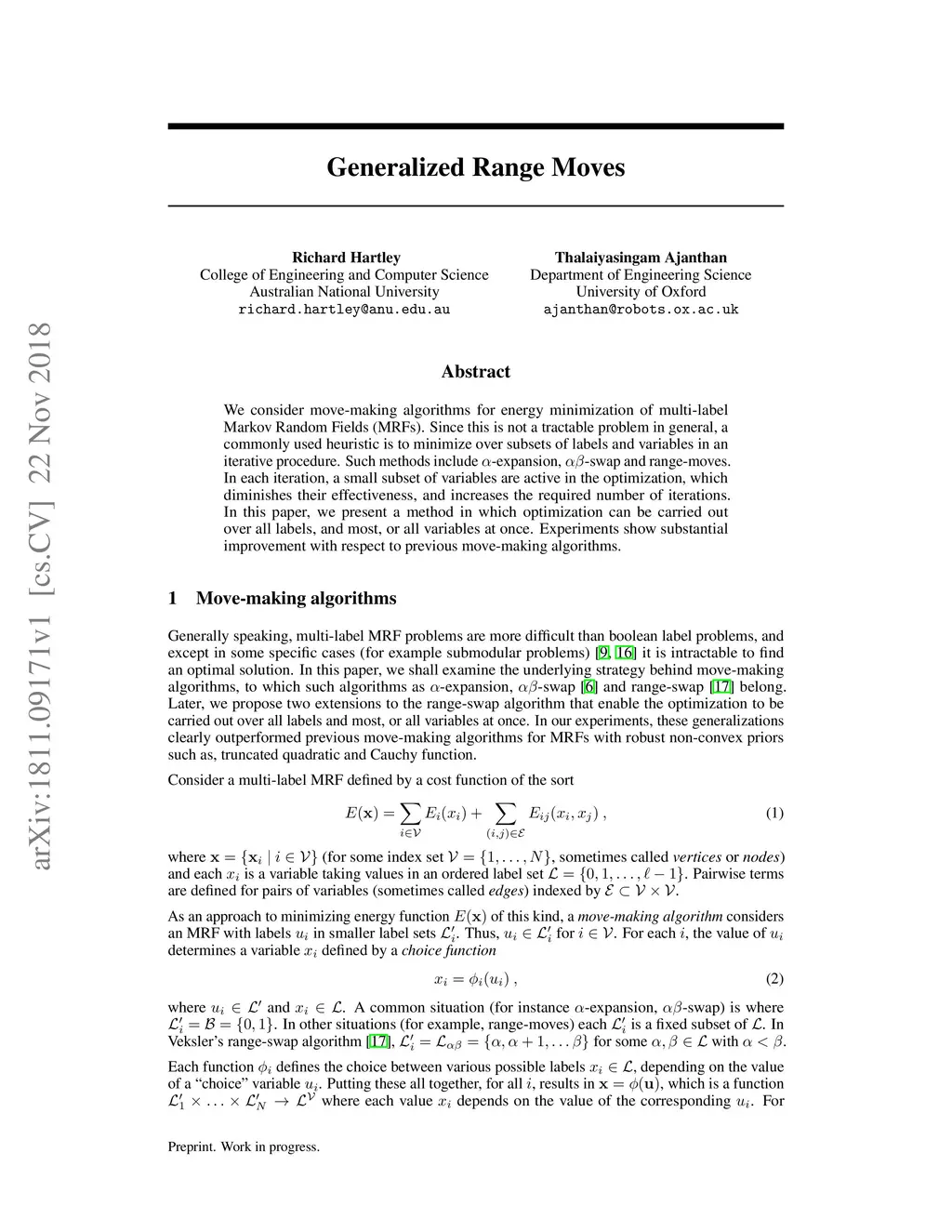 We consider move-making algorithms for energy minimization of multi-label Markov Random Fields (MRFs). Since this is not a tractable problem in general, a commonly used heuristic is to minimize over subsets of labels and variables in an iterative procedure. Such methods include {\alpha}-expansion, {\alpha}{\beta}-swap, and range-moves. In each iteration, a small subset of variables are active in the optimization, which diminishes their effectiveness, and increases the required number of iterations. In this paper, we present a method in which optimization can be carried out over all labels, and most, or all variables at once. Experiments show substantial improvement with respect to previous move-making algorithms.