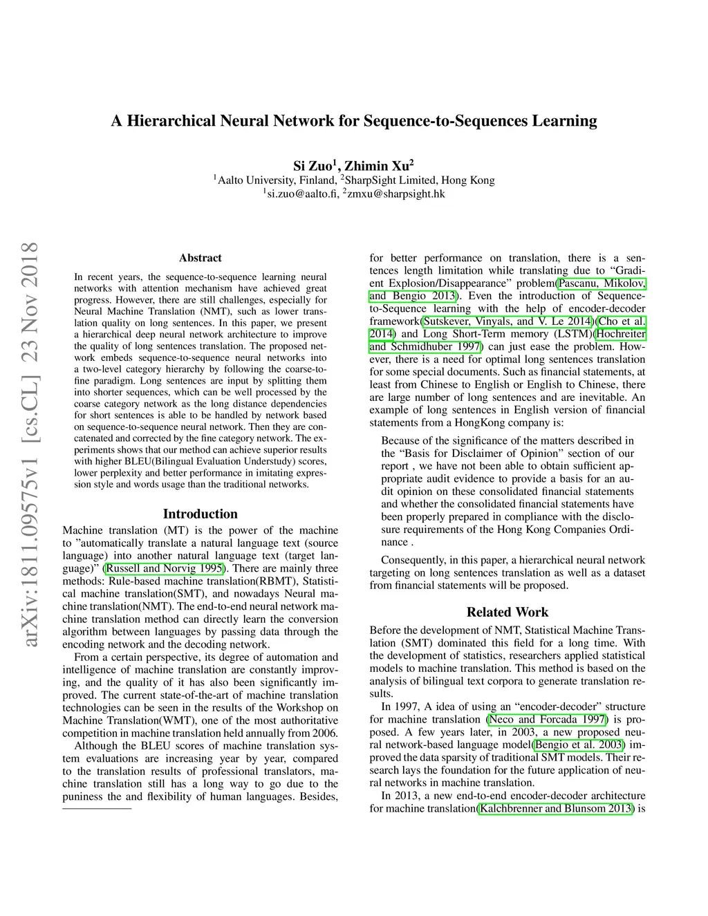 A Hierarchical Neural Network for Sequence-to-Sequences Learning
