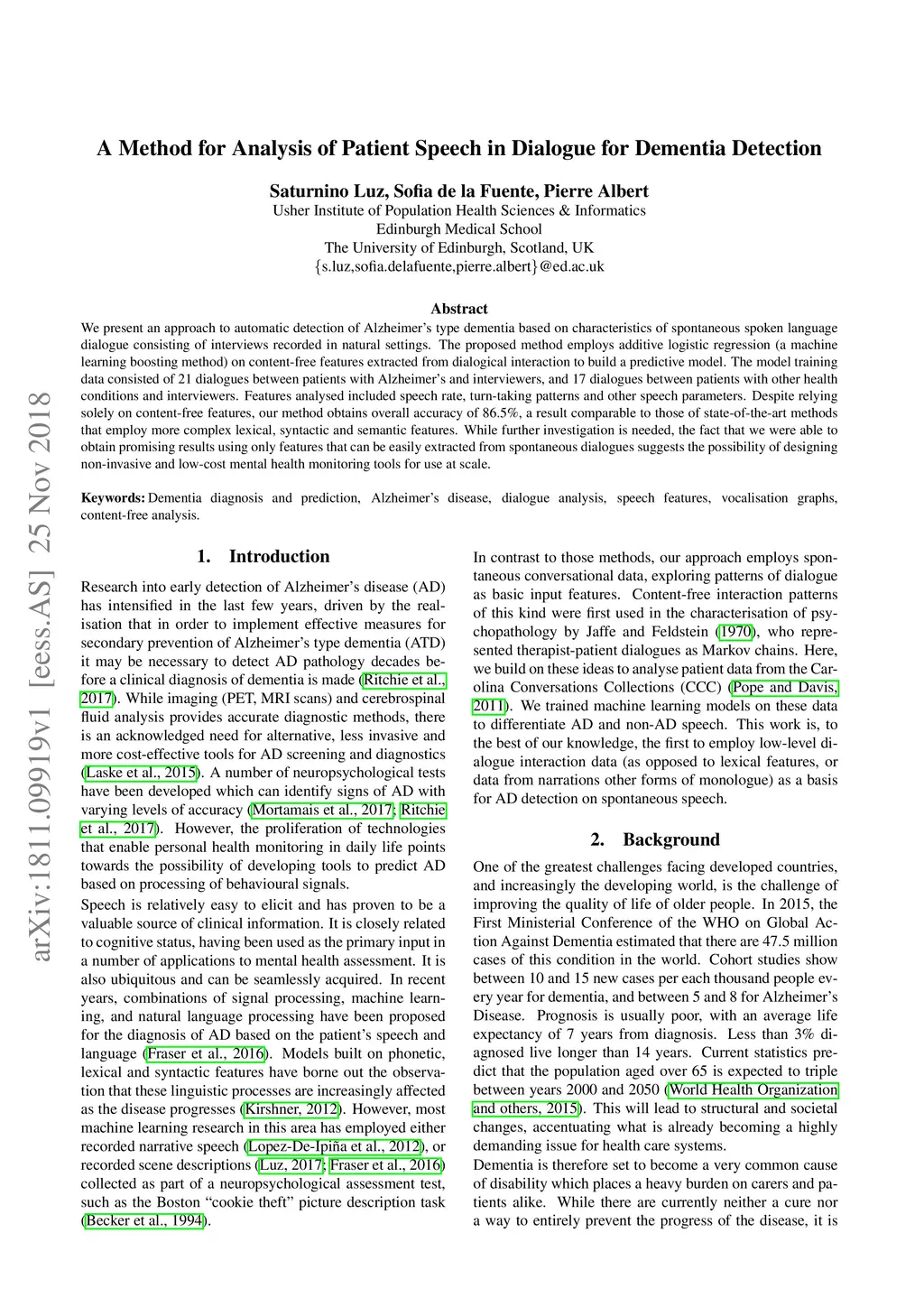 A Method for Analysis of Patient Speech in Dialogue for Dementia