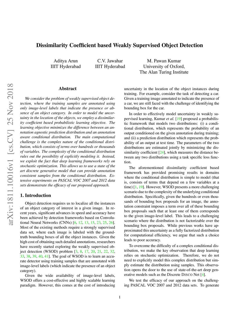 Dissimilarity Coefficient based Weakly Supervised Object Detection