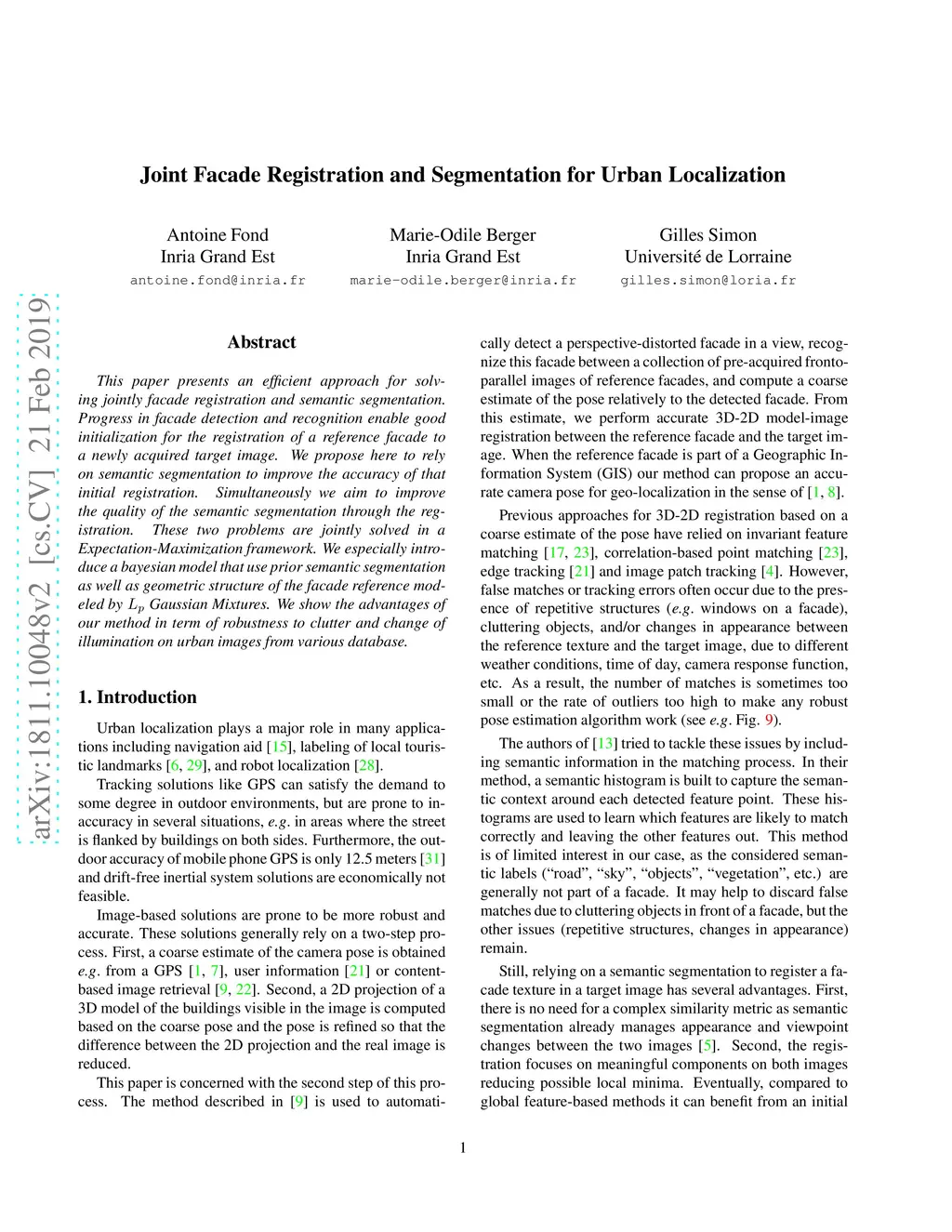 Joint Facade Registration and Segmentation for Urban Localization