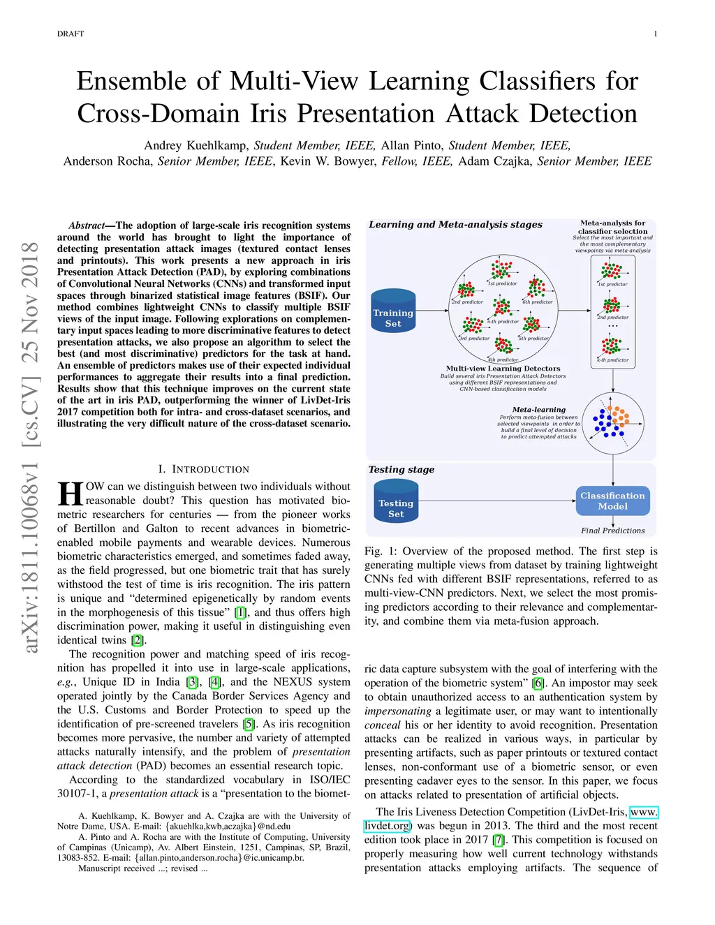 Ensemble of Multi-View Learning Classifiers for Cross-Domain Iris