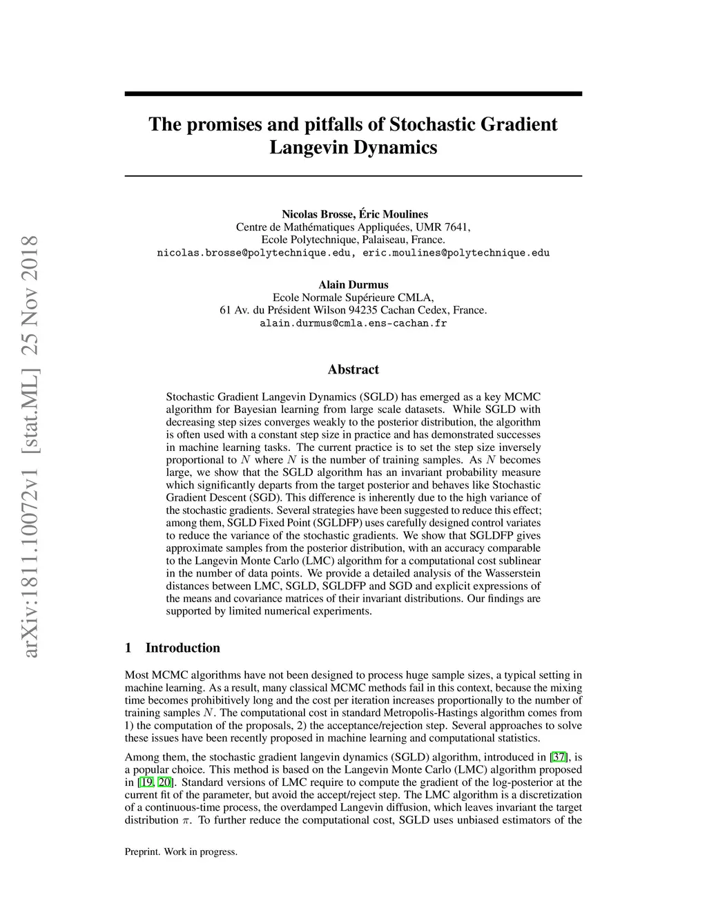 Stochastic Gradient Langevin Dynamics (SGLD) has emerged as a key MCMC algorithm for Bayesian learning from large scale datasets. While SGLD with decreasing step sizes converges weakly to the posterior distribution, the algorithm is often used with a constant step size in practice and has demonstrated successes in machine learning tasks. The current practice is to set the step size inversely proportional to where is the number of training samples. As becomes large, we show that the SGLD algorithm has an invariant probability measure which significantly departs from the target posterior and behaves like Stochastic Gradient Descent (SGD). This difference is inherently due to the high variance of the stochastic gradients. Several strategies have been suggested to reduce this effect; among them, SGLD Fixed Point (SGLDFP) uses carefully designed control variates to reduce the variance of the stochastic gradients. We show that SGLDFP gives approximate samples from the posterior distribution, with an accuracy comparable to the Langevin Monte Carlo (LMC) algorithm for a computational cost sublinear in the number of data points. We provide a detailed analysis of the Wasserstein distances between LMC, SGLD, SGLDFP and SGD and explicit expressions of the means and covariance matrices of their invariant distributions. Our findings are supported by limited numerical experiments.