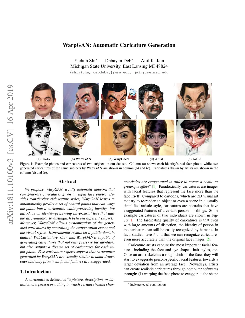 WarpGAN: Automatic Caricature Generation