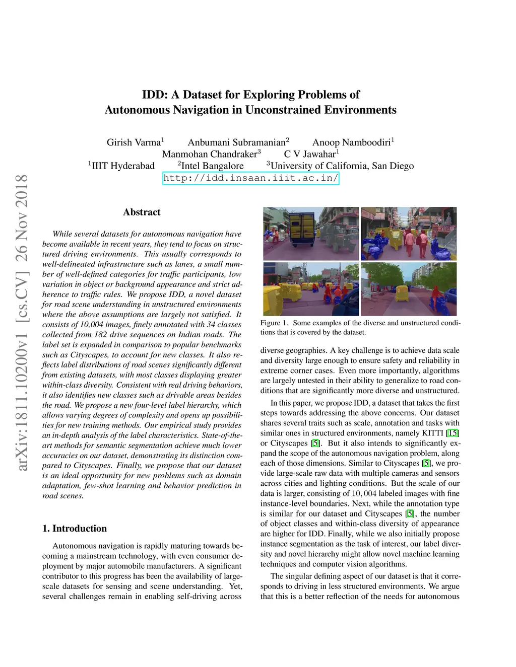 IDD: A Dataset for Exploring Problems of Autonomous Navigation in