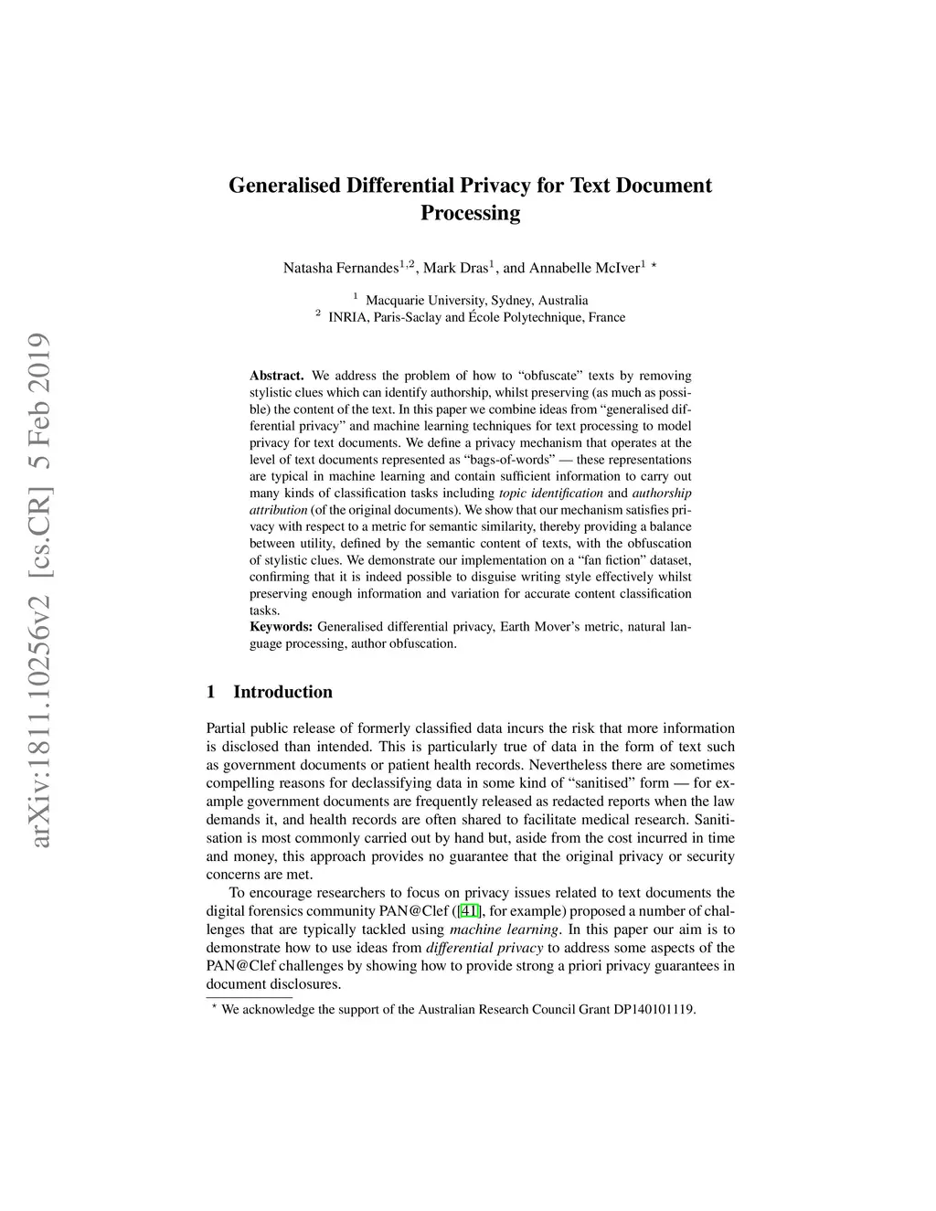 Generalised Differential Privacy for Text Document Processing