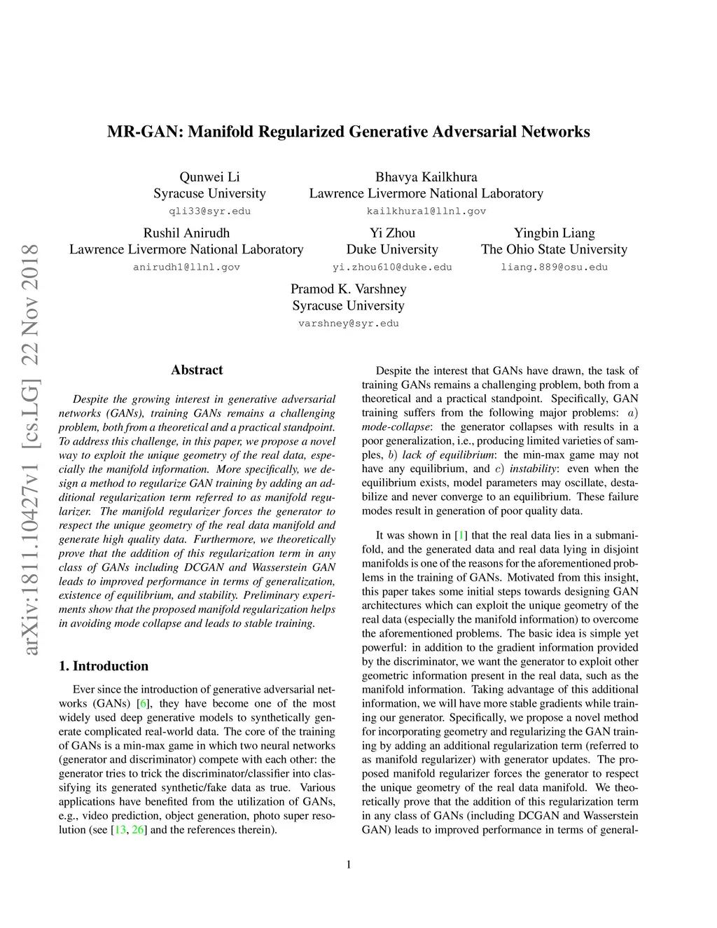 MR-GAN: Manifold Regularized Generative Adversarial Networks