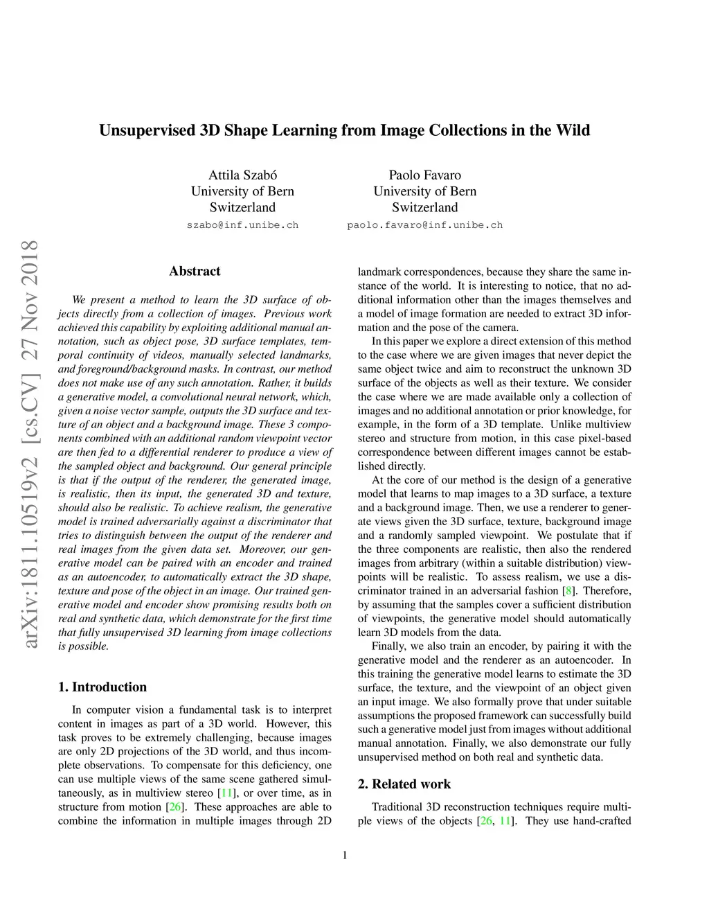 Unsupervised 3D Shape Learning from Image Collections in the Wild