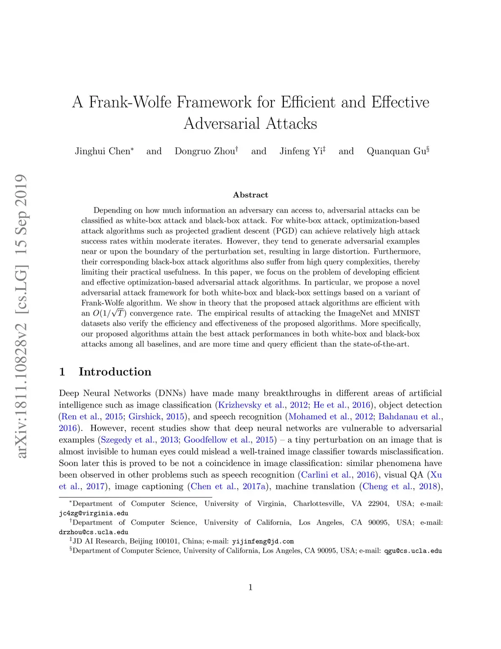 A Frank-Wolfe Framework for Efficient and Effective Adversarial Attacks