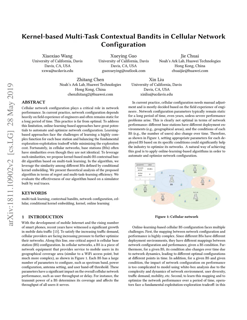 Kernel-based Multi-Task Contextual Bandits in Cellular Network