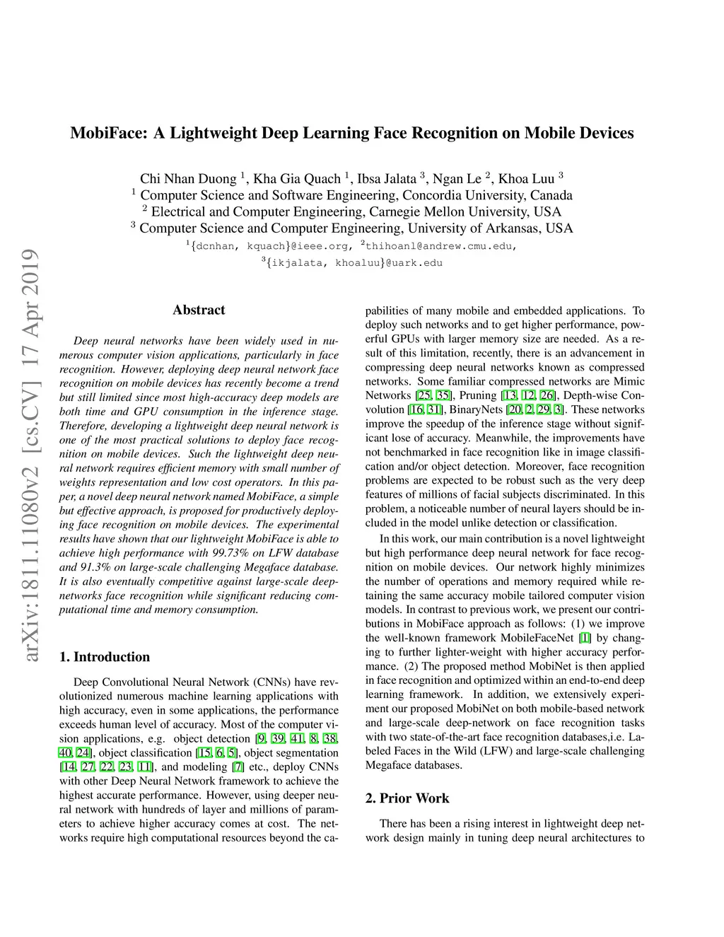 MobiFace: A Lightweight Deep Learning Face Recognition on Mobile Devices