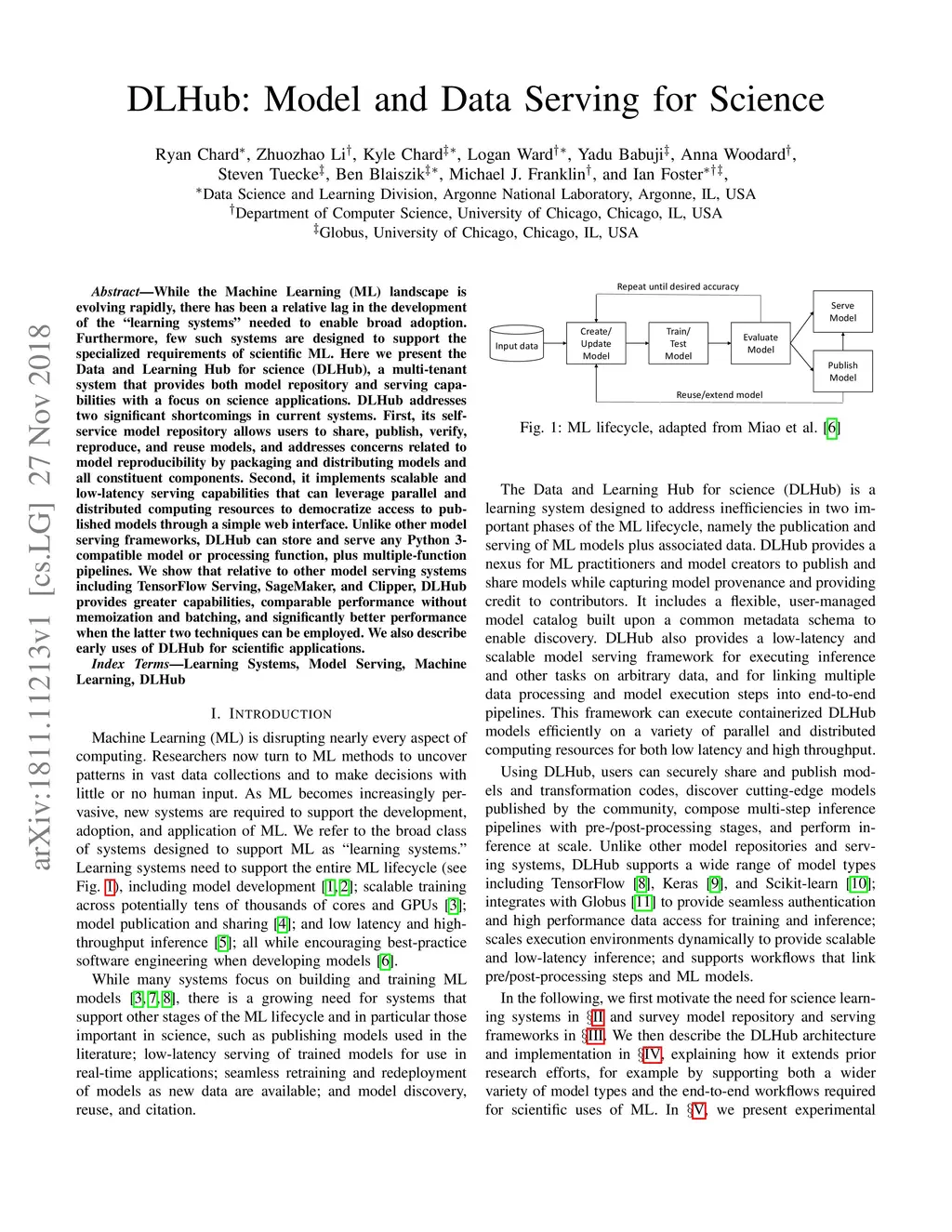 DLHub: Model and Data Serving for Science