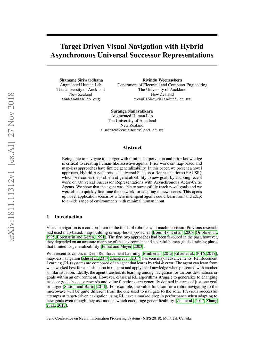 Being able to navigate to a target with minimal supervision and prior knowledge is critical to creating human-like assistive agents. Prior work on map-based and map-less approaches have limited generalizability. In this paper, we present a novel approach, Hybrid Asynchronous Universal Successor Representations (HAUSR), which overcomes the problem of generalizability to new goals by adapting recent work on Universal Successor Representations with Asynchronous Actor-Critic Agents. We show that the agent was able to successfully reach novel goals and we were able to quickly fine-tune the network for adapting to new scenes. This opens up novel application scenarios where intelligent agents could learn from and adapt to a wide range of environments with minimal human input.