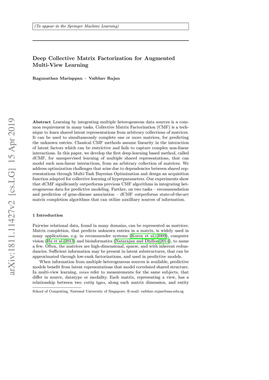 Deep Collective Matrix Factorization for Augmented Multi-View Learning
