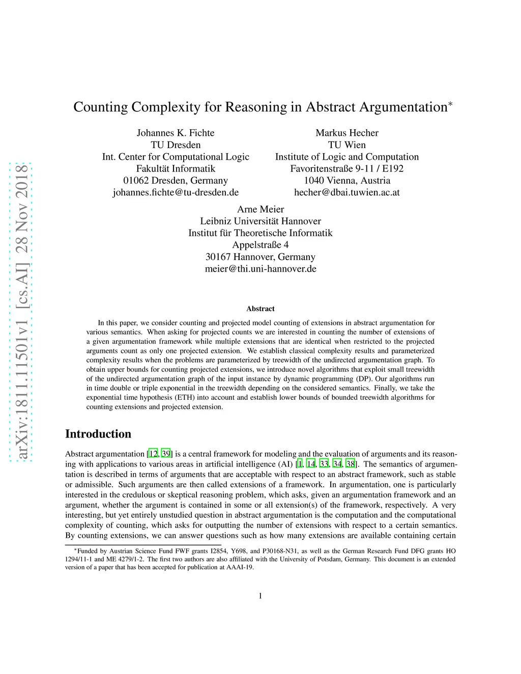 In this paper, we consider counting and projected model counting of extensions in abstract argumentation for various semantics. When asking for projected counts we are interested in counting the number of extensions of a given argumentation framework while multiple extensions that are identical when restricted to the projected arguments count as only one projected extension. We establish classical complexity results and parameterized complexity results when the problems are parameterized by treewidth of the undirected argumentation graph. To obtain upper bounds for counting projected extensions, we introduce novel algorithms that exploit small treewidth of the undirected argumentation graph of the input instance by dynamic programming (DP). Our algorithms run in time double or triple exponential in the treewidth depending on the considered semantics. Finally, we take the exponential time hypothesis (ETH) into account and establish lower bounds of bounded treewidth algorithms for counting extensions and projected extension.