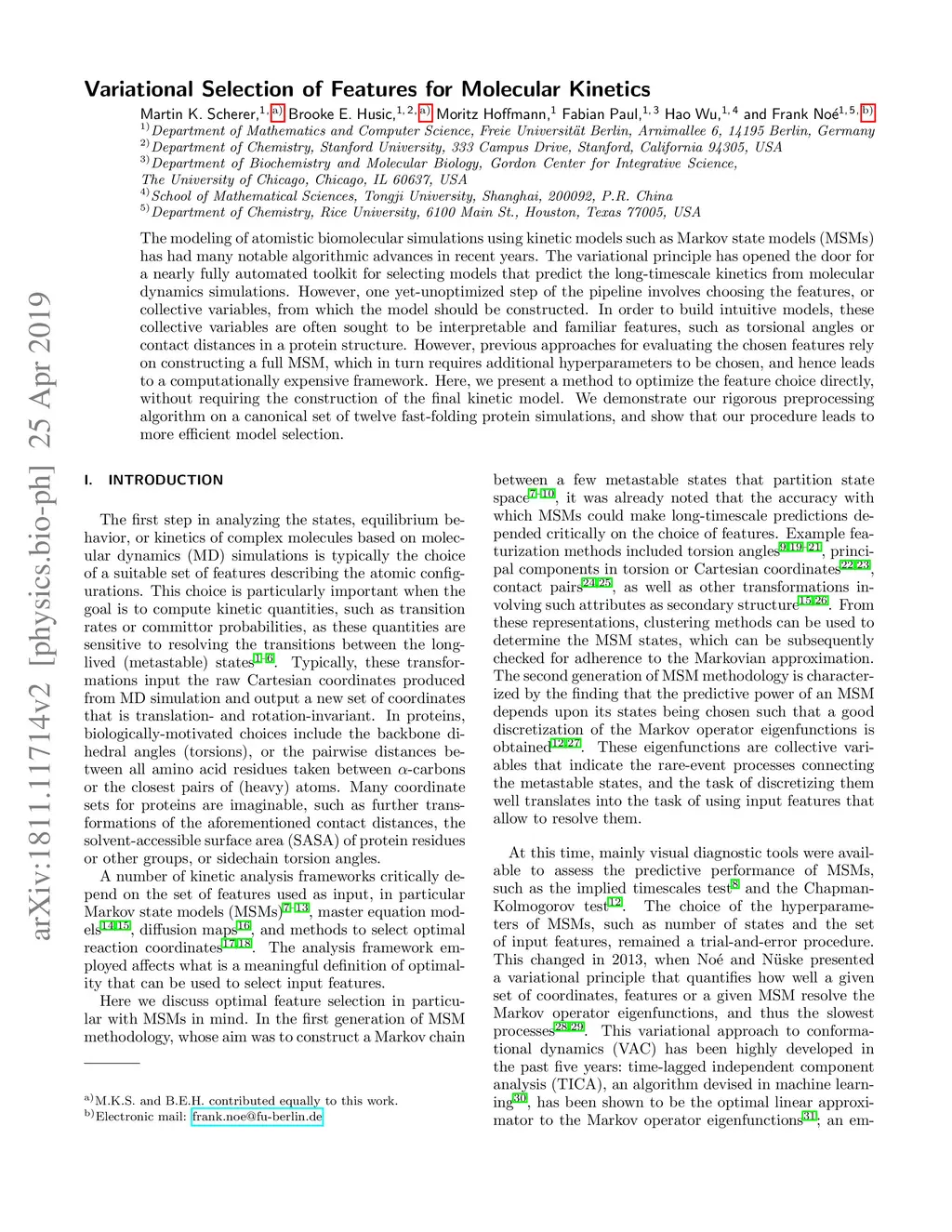The modeling of atomistic biomolecular simulations using kinetic models such as Markov state models (MSMs) has had many notable algorithmic advances in recent years. The variational principle has opened the door for a nearly fully automated toolkit for selecting models that predict the long-time kinetics from molecular dynamics simulations. However, one yet-unoptimized step of the pipeline involves choosing the features, or collective variables, from which the model should be constructed. In order to build intuitive models, these collective variables are often sought to be interpretable and familiar features, such as torsional angles or contact distances in a protein structure. However, previous approaches for evaluating the chosen features rely on constructing a full MSM, which in turn requires additional hyperparameters to be chosen, and hence leads to a computationally expensive framework. Here, we present a method to optimize the feature choice directly, without requiring the construction of the final kinetic model. We demonstrate our rigorous preprocessing algorithm on a canonical set of twelve fast-folding protein simulations, and show that our procedure leads to more efficient model selection.