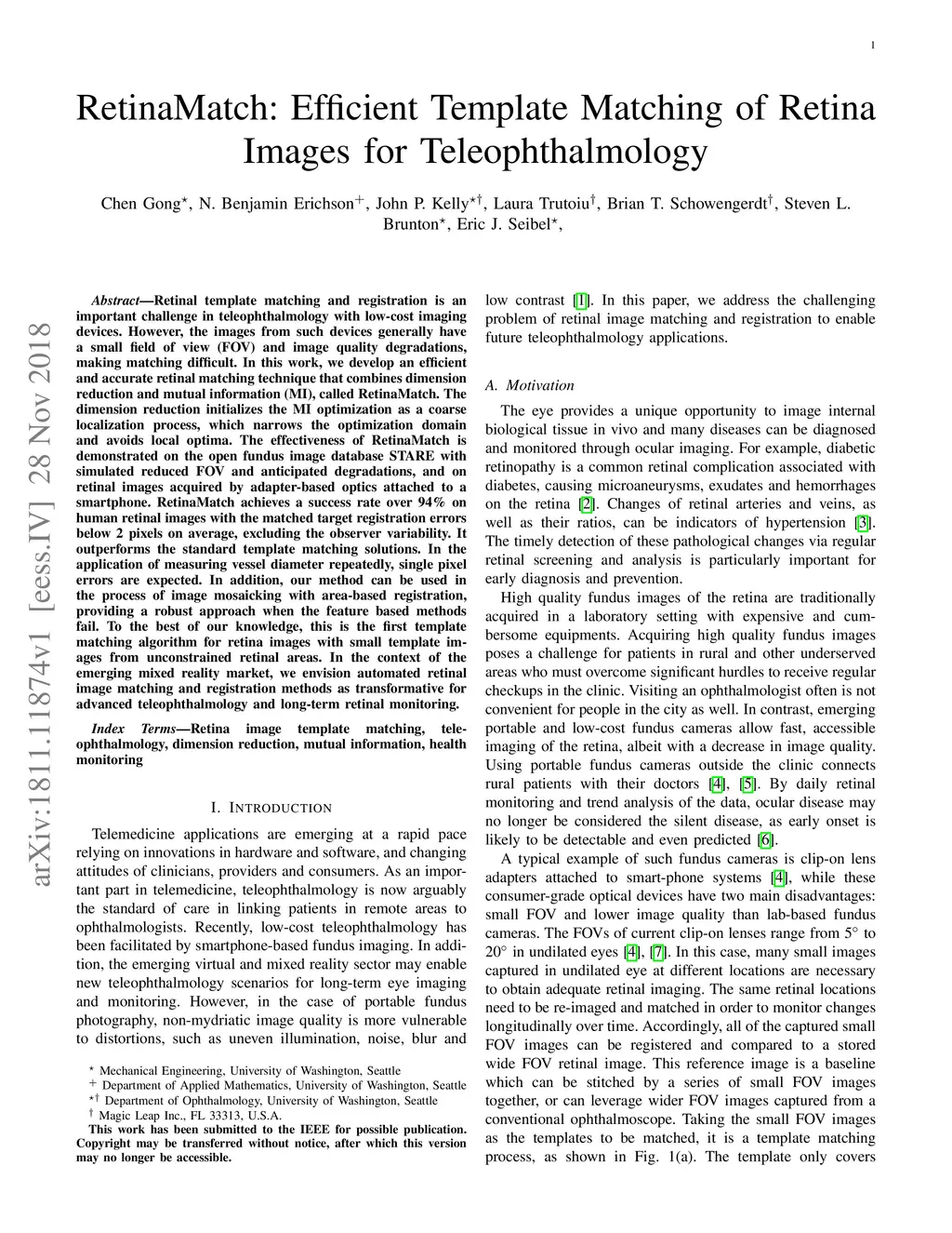 RetinaMatch: Efficient Template Matching of Retina Images for