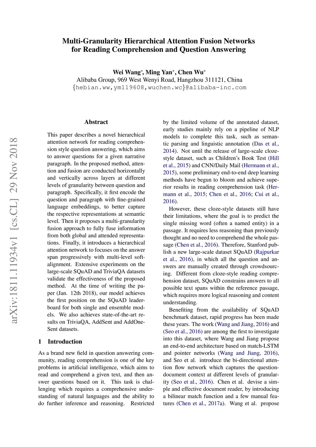 Multi-granularity hierarchical attention fusion networks for reading