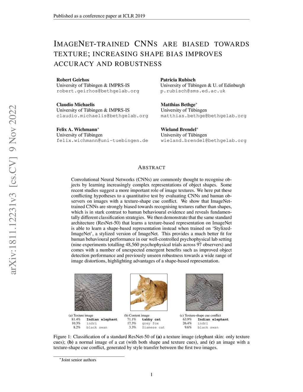 ImageNet-trained CNNs are biased towards texture; increasing shape bias