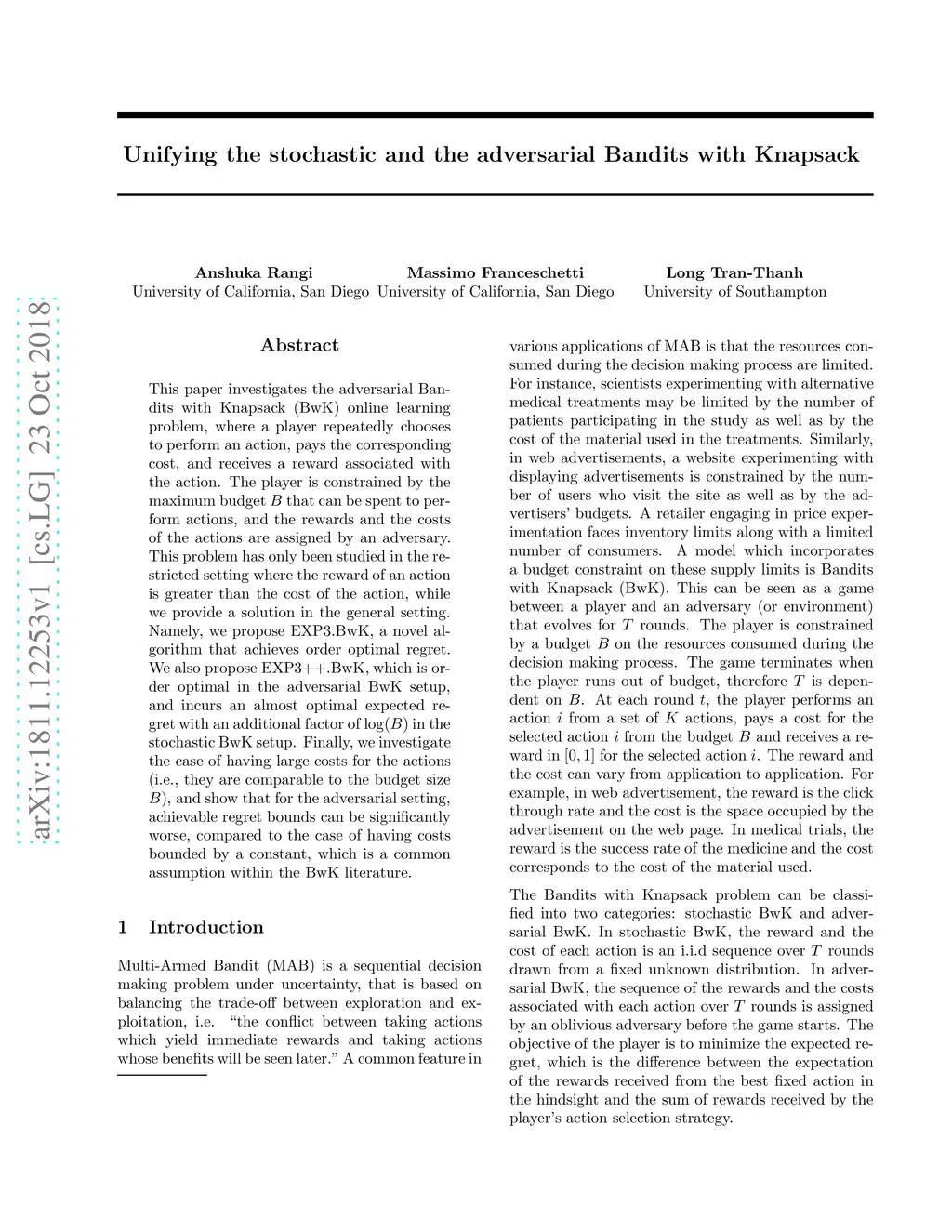 Unifying the stochastic and the adversarial Bandits with Knapsack