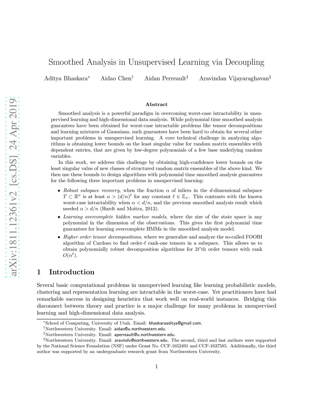 Smoothed Analysis in Unsupervised Learning via Decoupling