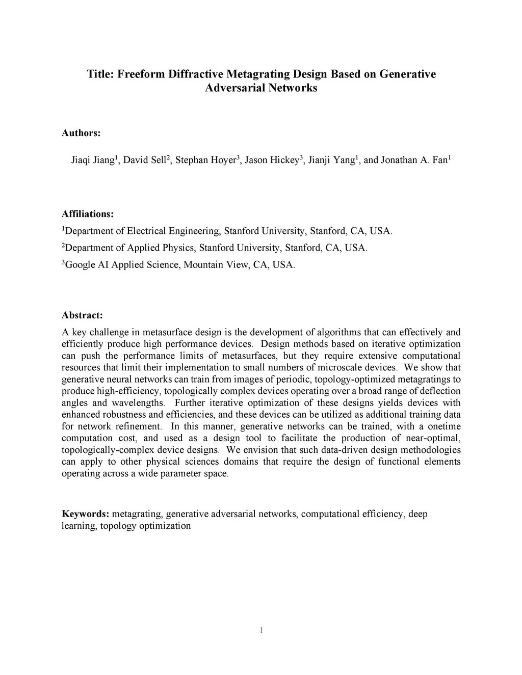 Freeform Diffractive Metagrating Design Based on Generative Adversarial