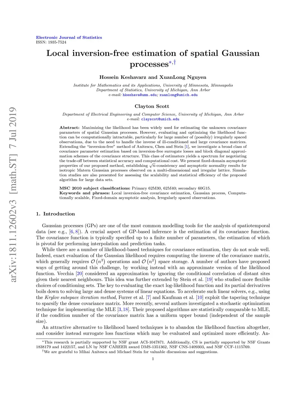 Maximizing the likelihood has been widely used for estimating the unknown covariance parameters of spatial Gaussian processes. However, evaluating and optimizing the likelihood function can be computationally intractable, particularly for large number of (possibly) irregularly spaced observations, due to the need to handle the inverse of ill-conditioned and large covariance matrices. Extending the "inversion-free" method of Anitescu, Chen and Stein \cite{anitescu2017inversion}, we investigate a broad class of covariance parameter estimators based on inversion-free surrogate losses and block diagonal approximation schemes of the covariance structure. This class of estimators yields a spectrum for negotiating the trade-off between statistical accuracy and computational cost. We present fixed-domain asymptotic properties of our proposed method, establishing -consistency and asymptotic normality results for isotropic Matern Gaussian processes observed on a multi-dimensional and irregular lattice. Simulation studies are also presented for assessing the scalability and statistical efficiency of the proposed algorithm for large data sets.