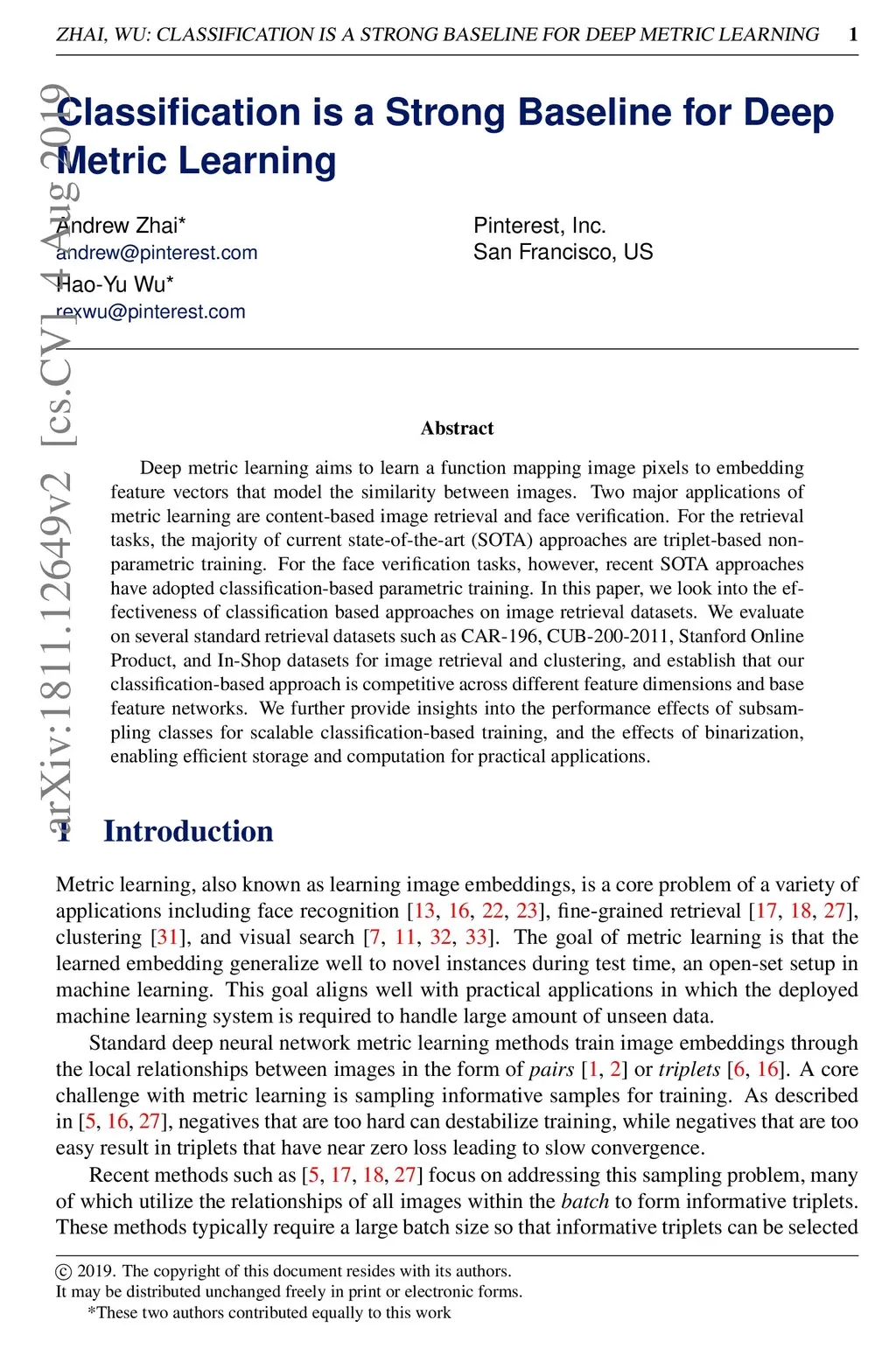 Deep metric learning aims to learn a function mapping image pixels to embedding feature vectors that model the similarity between images. Two major applications of metric learning are content-based image retrieval and face verification. For the retrieval tasks, the majority of current state-of-the-art (SOTA) approaches are triplet-based non-parametric training. For the face verification tasks, however, recent SOTA approaches have adopted classification-based parametric training. In this paper, we look into the effectiveness of classification based approaches on image retrieval datasets. We evaluate on several standard retrieval datasets such as CAR-196, CUB-200-2011, Stanford Online Product, and In-Shop datasets for image retrieval and clustering, and establish that our classification-based approach is competitive across different feature dimensions and base feature networks. We further provide insights into the performance effects of subsampling classes for scalable classification-based training, and the effects of binarization, enabling efficient storage and computation for practical applications.