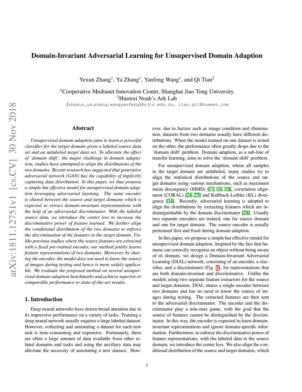 Domain-Invariant Adversarial Learning for Unsupervised Domain Adaption