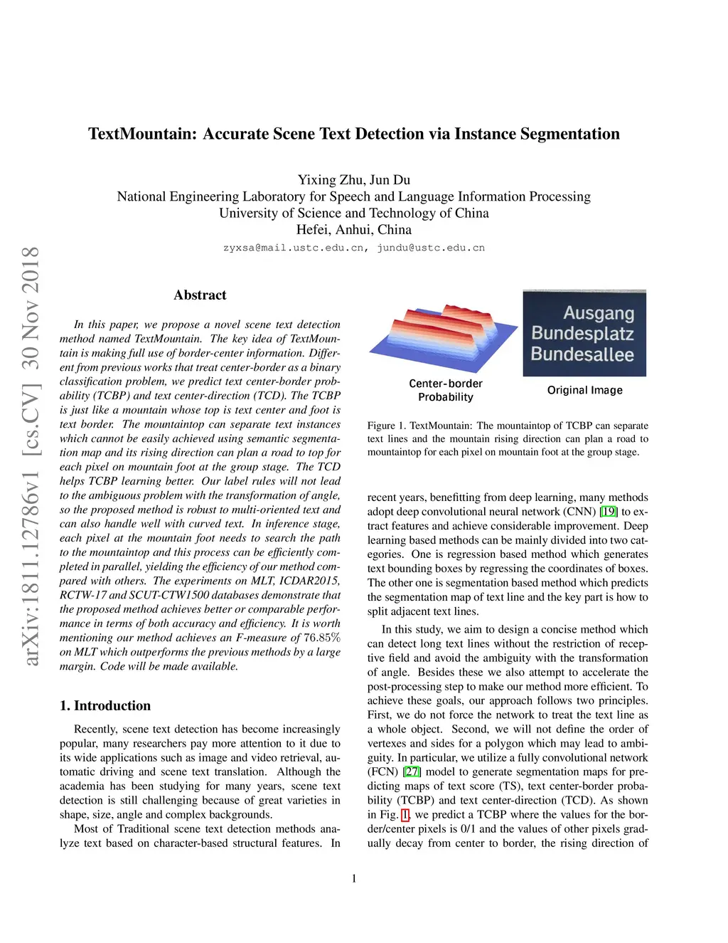 TextMountain: Accurate Scene Text Detection via Instance Segmentation