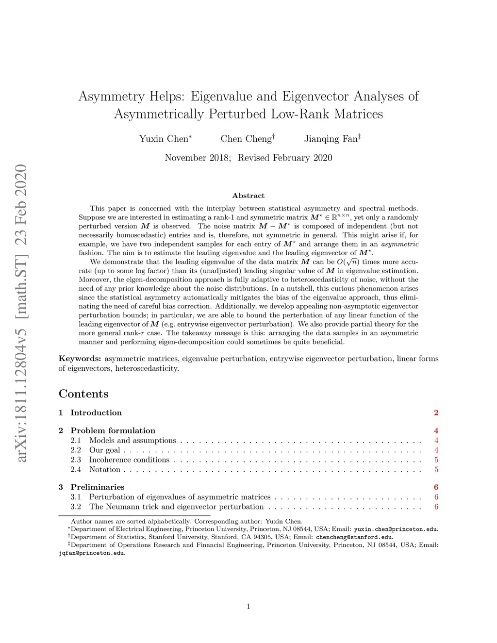 Asymmetry Helps: Eigenvalue and Eigenvector Analyses of Asymmetrically