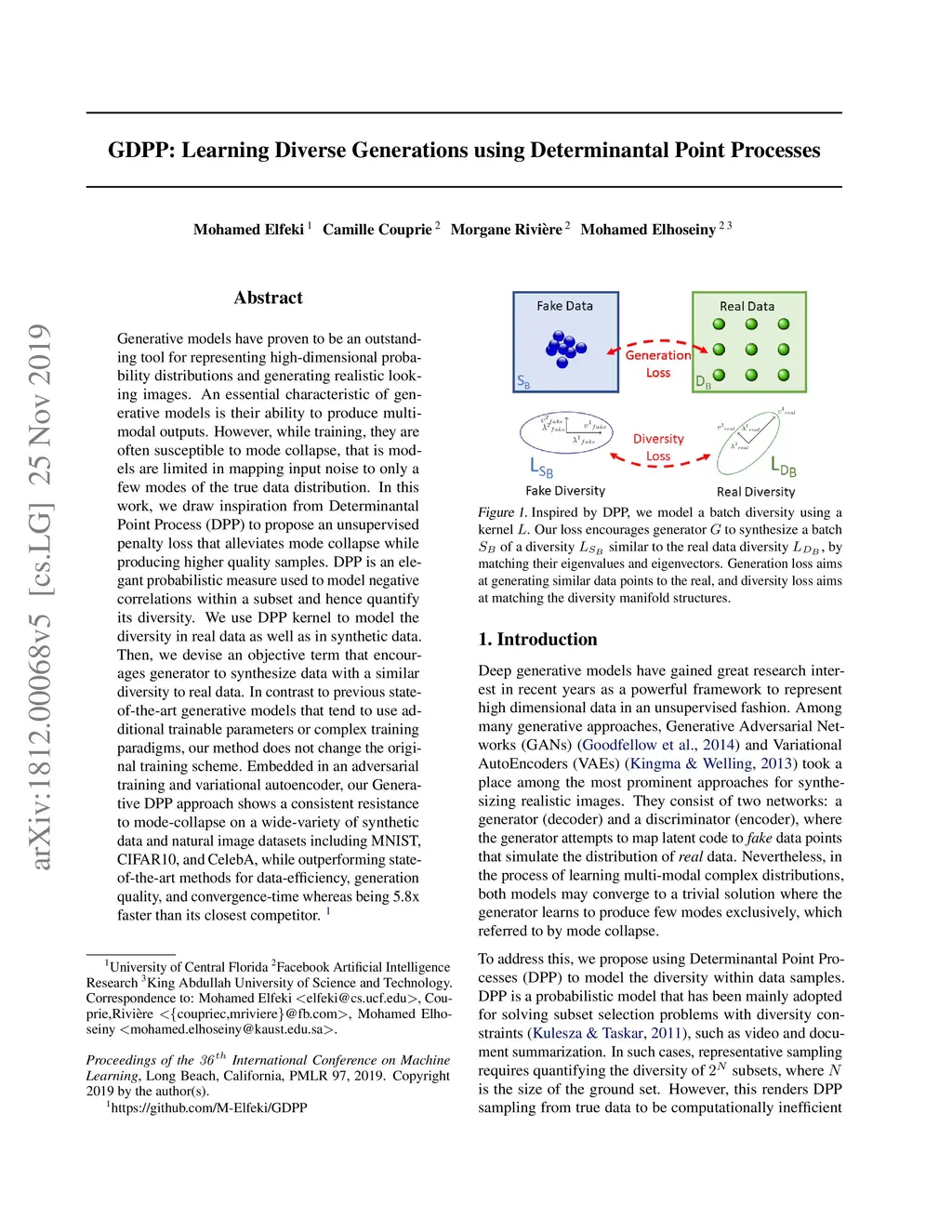 GDPP: Learning Diverse Generations Using Determinantal Point Process