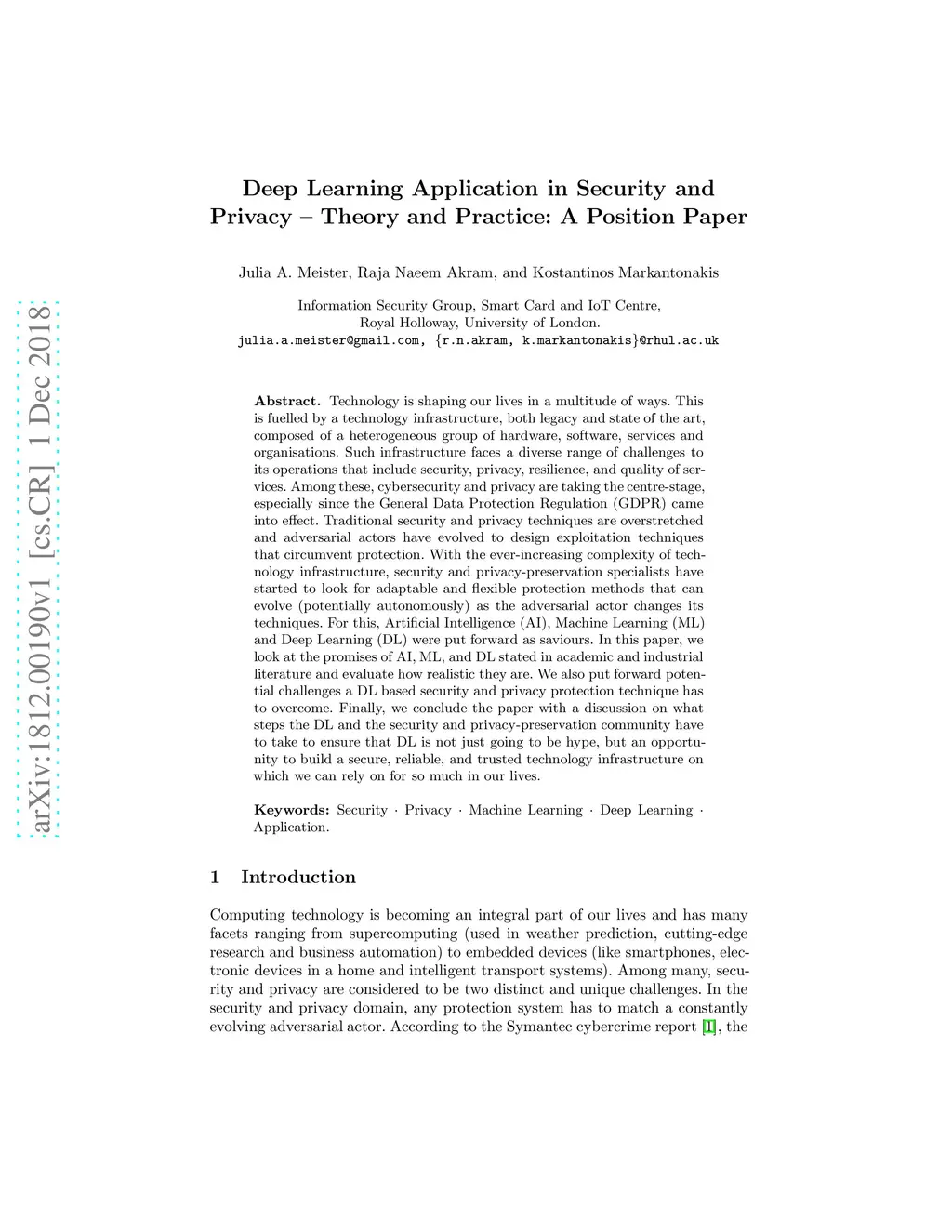 Deep Learning Application in Security and Privacy -- Theory and