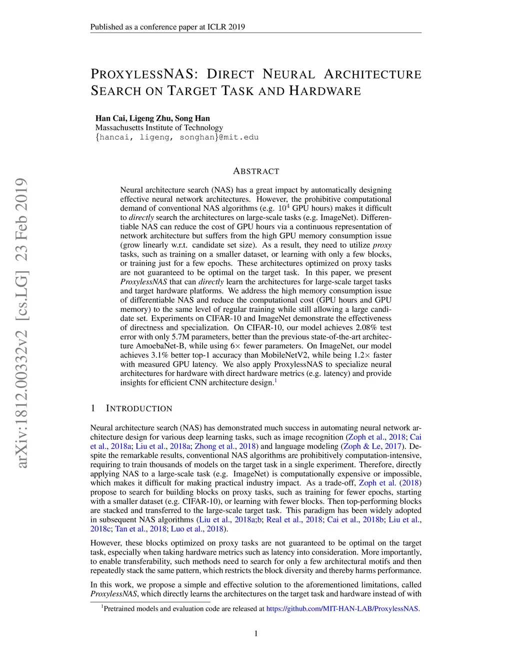 ProxylessNAS: Direct Neural Architecture Search on Target Task and