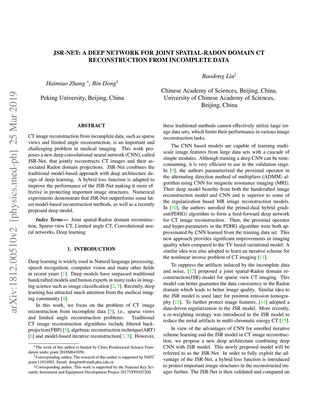 JSR-Net: A Deep Network for Joint Spatial-Radon Domain CT Reconstruction