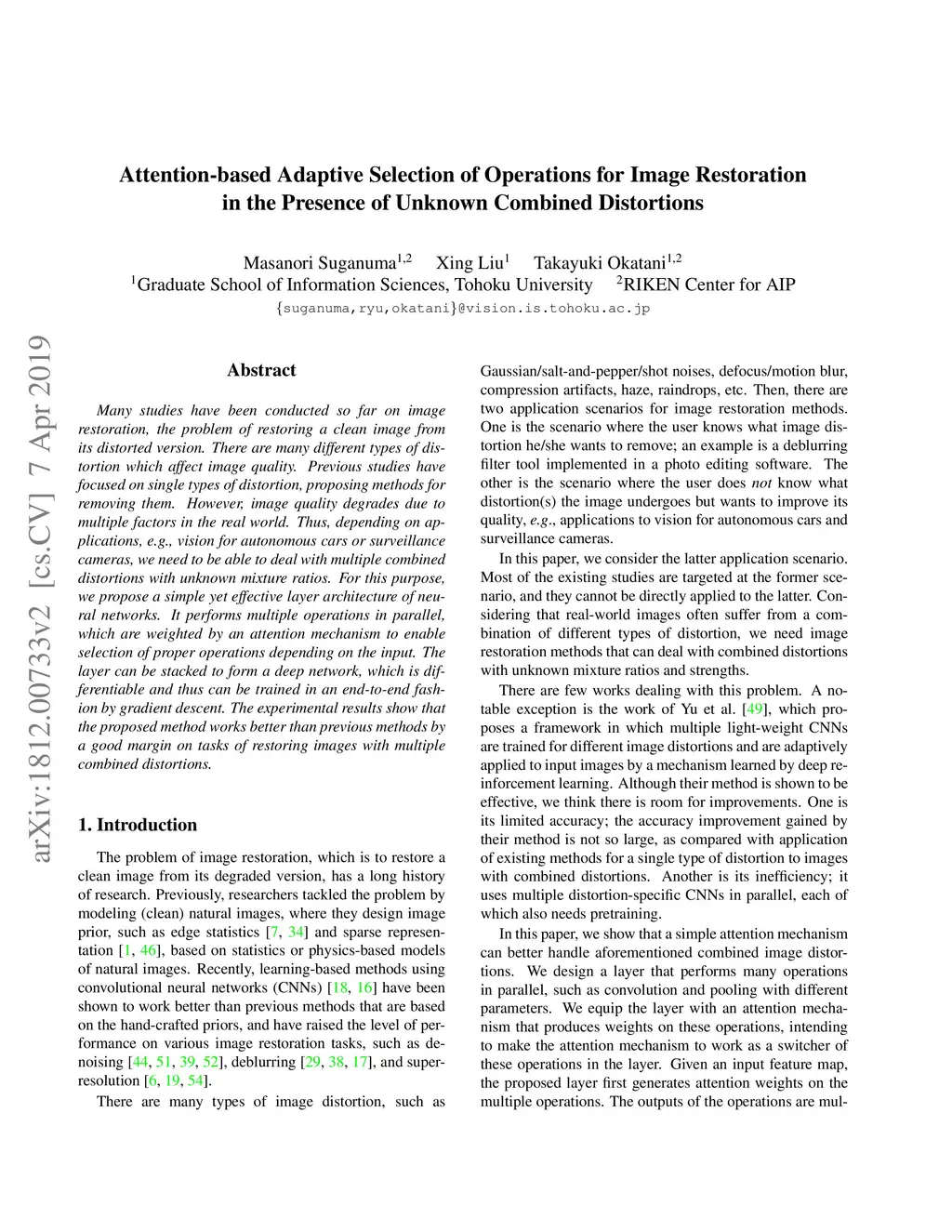 Attention-based Adaptive Selection of Operations for Image Restoration