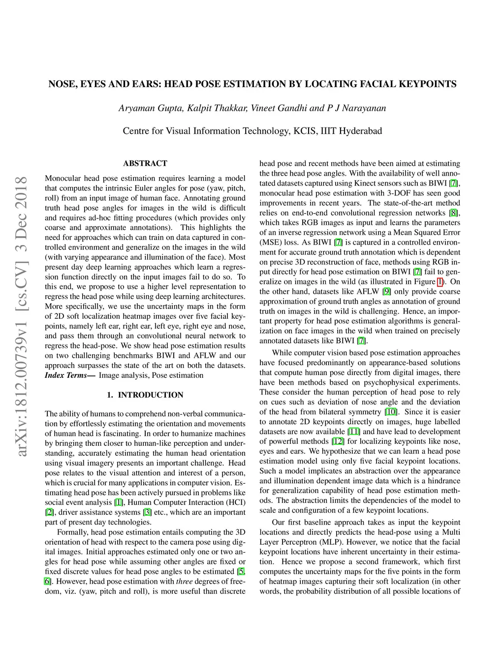 Nose, eyes and ears: Head pose estimation by locating facial keypoints